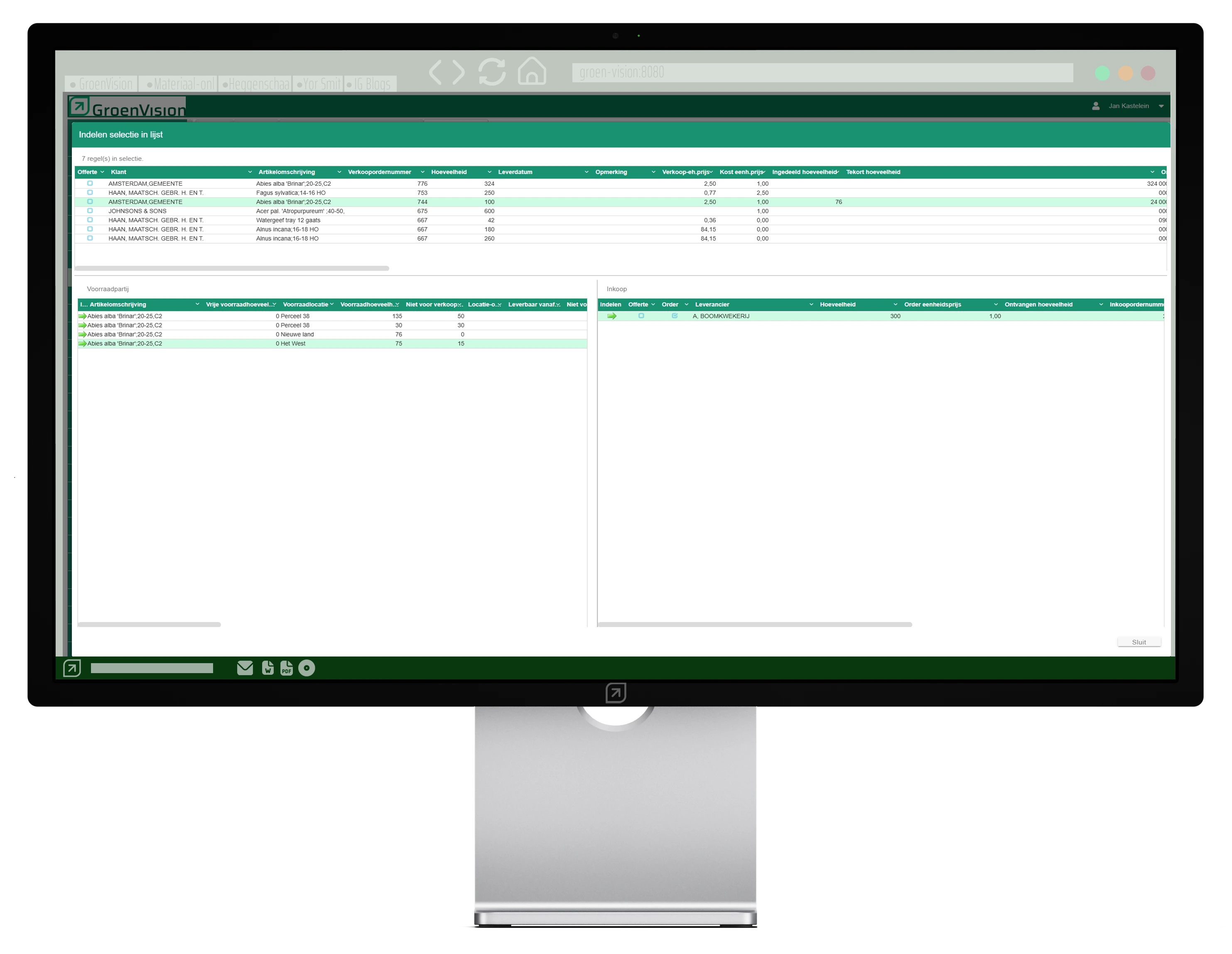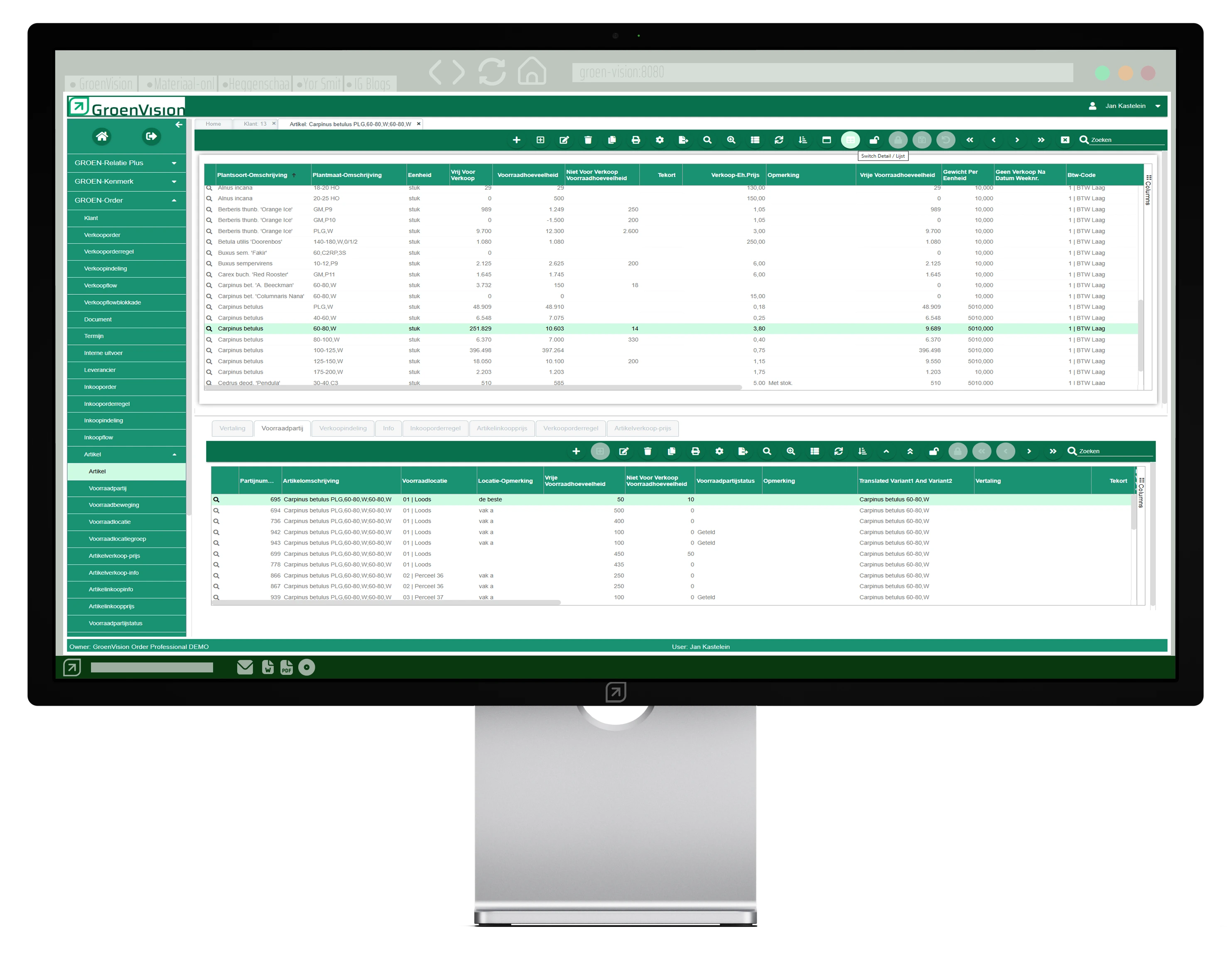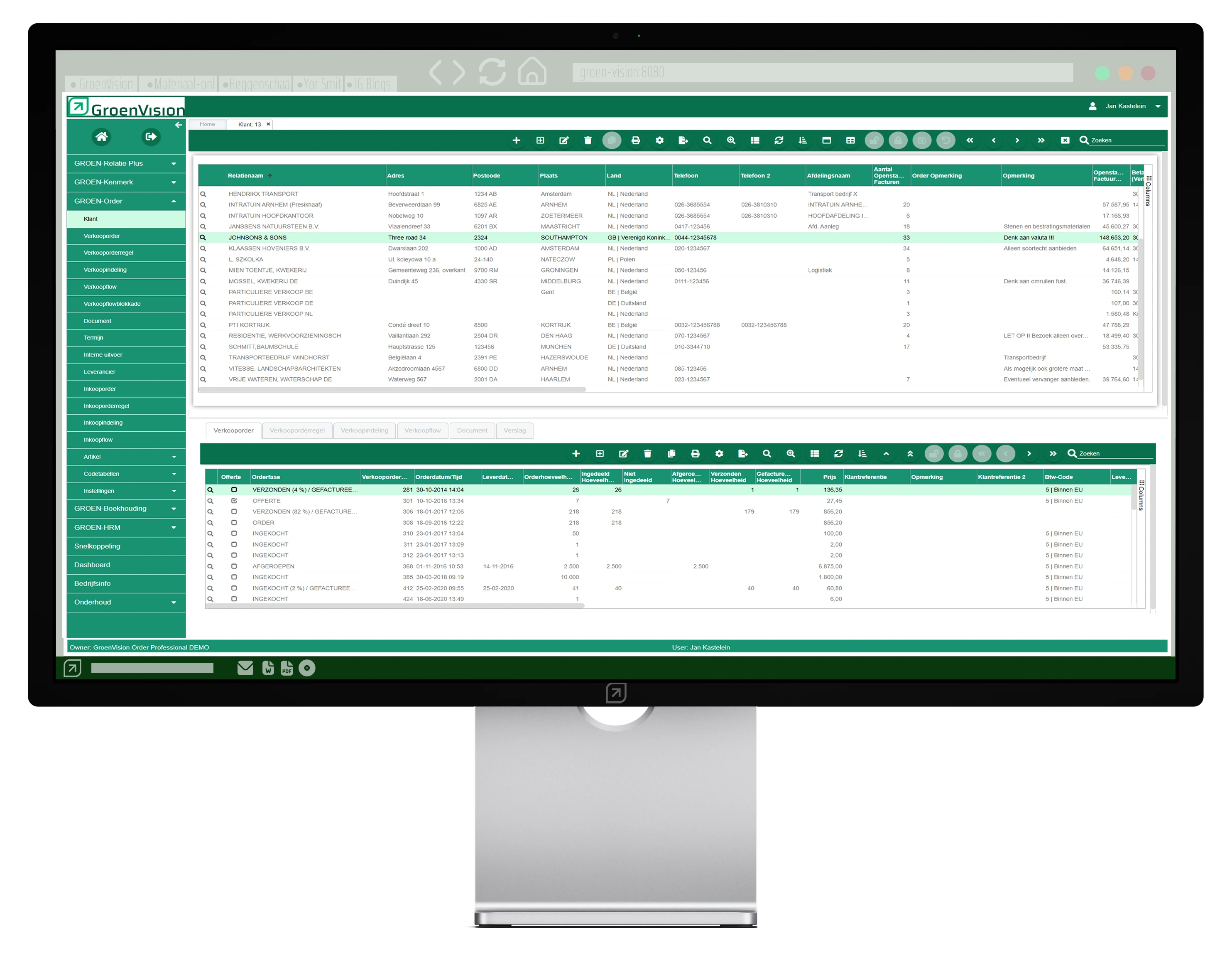 Bijvoorbeeld als je als gebruiker een order aan het invoeren bent en de telefoon gaat, dan kun je direct naar relatie gaan om e.e.a. van de betreffende klant te bekijken en daarna via de tab bovenin gelijk weer terug naar de order waarmee je bezig was. Hierdoor kun je nog sneller door GroenVision navigeren en houd je de focus op je werkzaamheden.