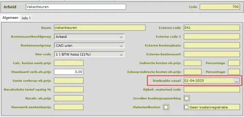 Vanuit de CAO geldt als startdatum voor de verlofstand 1 januari van het lopende jaar. In de praktijk zijn er meerdere bedrijven die het verlofsaldo ook per 1 april willen tellen. Om te zorgen dat er vanaf 1 april wordt geteld moet bij de uursoort Vakantieuren de startdatum op 1 april van dit jaar worden ingesteld.