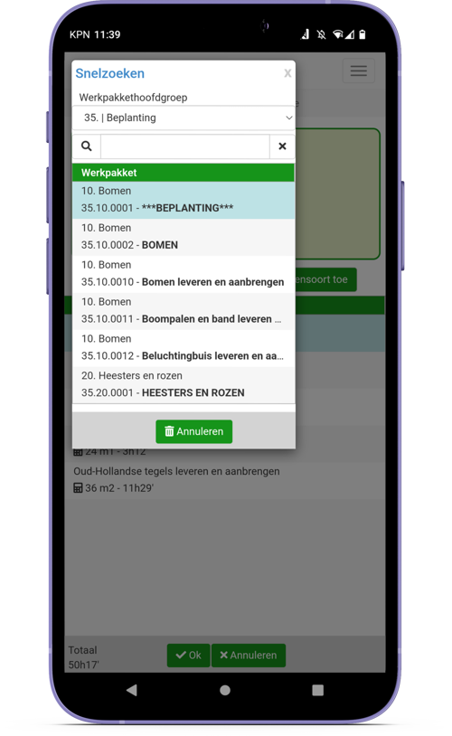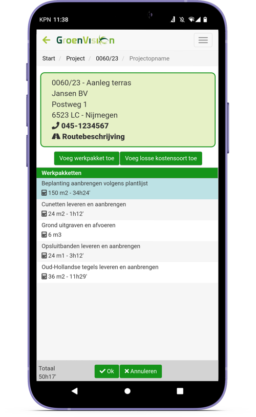 Ter plekke op de projectlocatie kun je op je mobiel of tablet nieuwe klanten en projecten toevoegen en direct bij deze projecten de opname doen van de te verrichten werkzaamheden. Deze hoeveelheden kunnen standaard werkpakketten en/of losse kostensoorten zoals uren en materialen zijn.