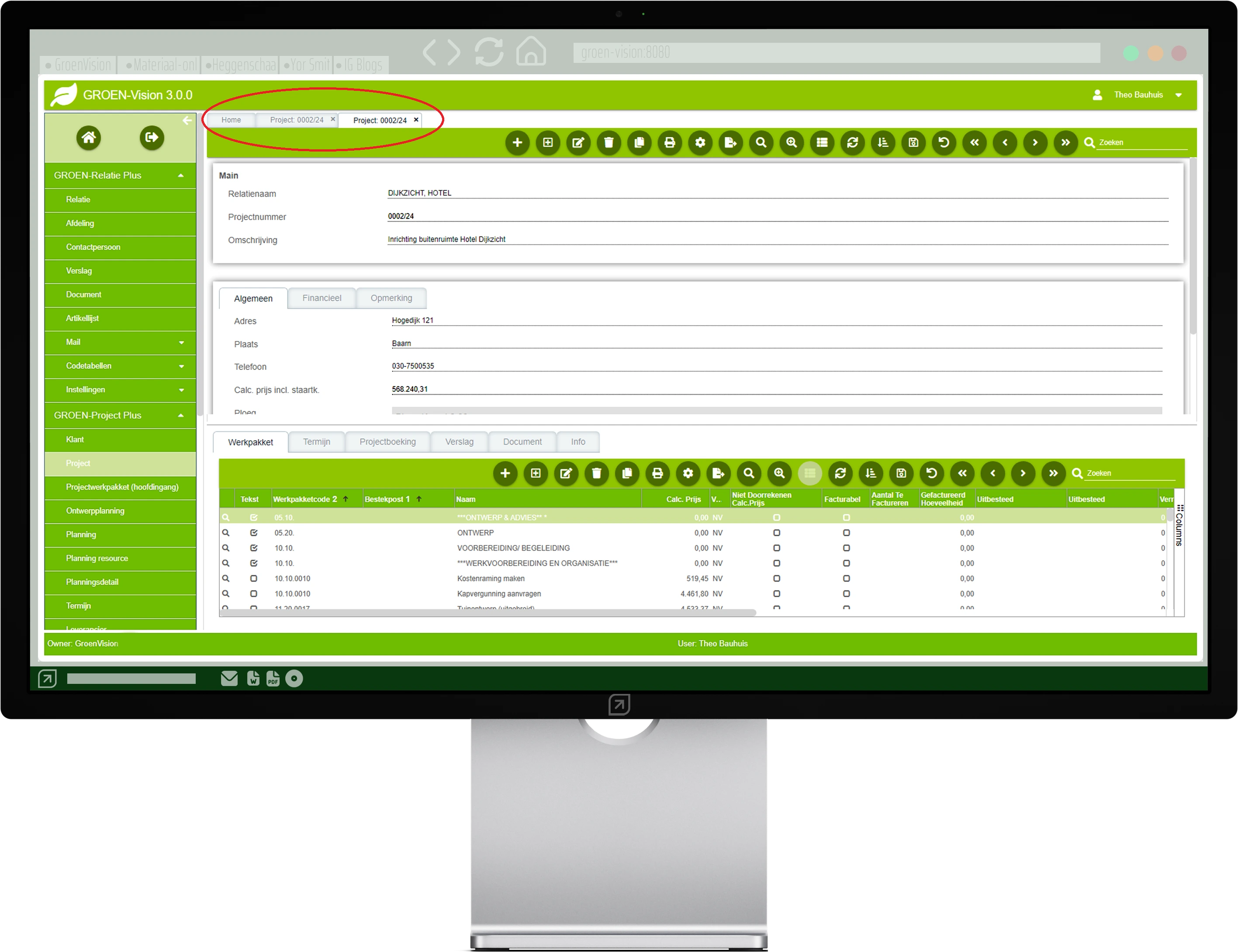 Je kunt zelf bepalen welke gegevens/velden je wel of niet op het scherm wilt zien. Een mooi voorbeeld is het projectenscherm. Als je een project opent in detail, dan zie je bovenin 10 tabs met wel 100 velden. Waarschijnlijk gebruik je maar 10-15 velden verspreid over verschillende tabs. In GroenVision 3.0 kun je zelf aangeven welke velden je wilt zien en ook op welke tab je die wilt zien. Je maakt dan bijvoorbeeld 2 tabs. 1 tab voor calculatie en werkvoorbereiding en 1 tab met velden om te vullen na opdracht bv start- en einddatum. Dit geeft veel meer rust en overzicht. En je kunt in de eigen gewenste volgorde de velden vullen.