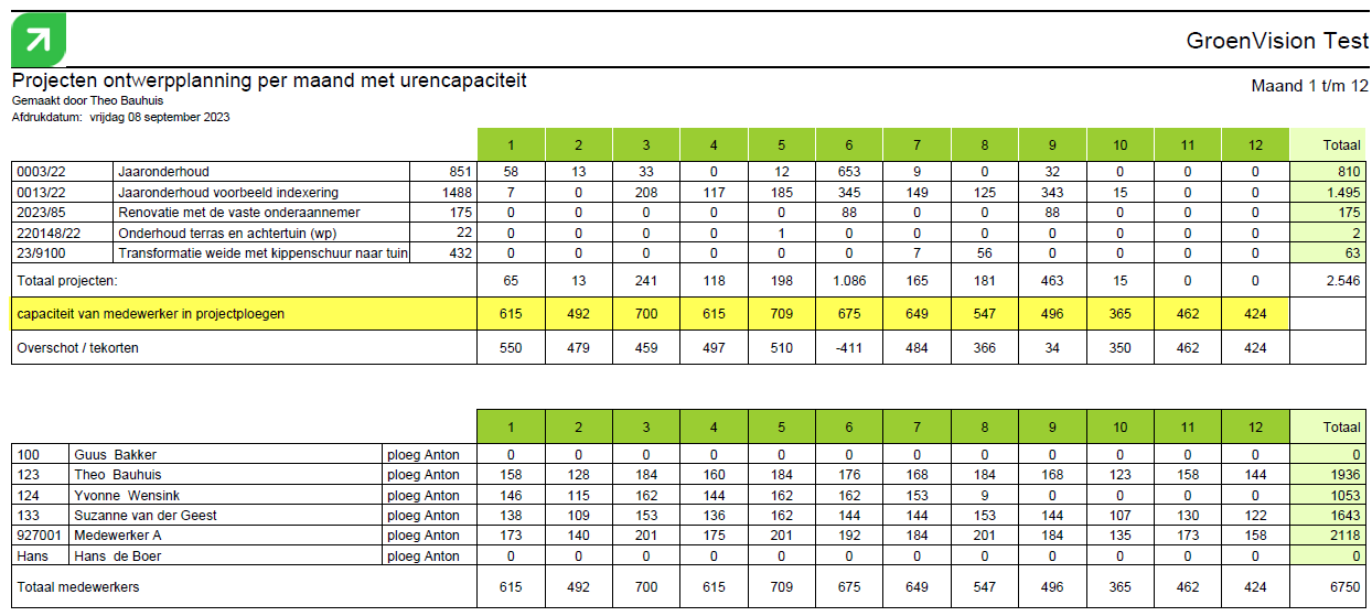 De ontwerpplanning biedt al vanaf het begin een vergelijking tussen de arbeidsbehoefte vanuit de calculatie en de beschikbare capaciteit vanuit de medewerkers en hun werkrooster.