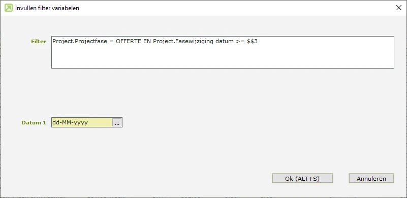 Project.Projectfase = OFFERTE EN Project.Fasewijziging datum >= $$3