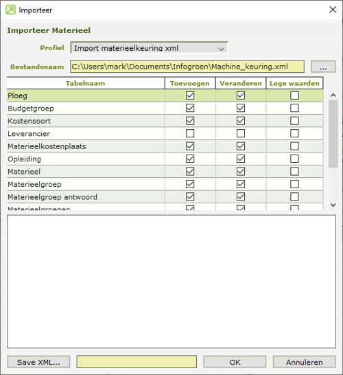 Om de keuringen in te lezen wordt een bestand aangemaakt met een vooraf vastgestelde indeling. Keuringen die nieuw zijn, kunnen worden toegevoegd, maar een keuring kan ook worden bijgewerkt door nogmaals met hetzelfde keuringsnummer te importeren. Dat kan handig zijn als de keurende instantie, zodra de keuring gepland is, al een keuringsnummer met datum en machinenummer aanlevert. Zodra de keuring is uitgevoerd kan de keuring nogmaals worden geïmporteerd, waarmee ook de keuringsuitslag en de datum wanneer er weer gekeurd moet worden wordt ingevuld.