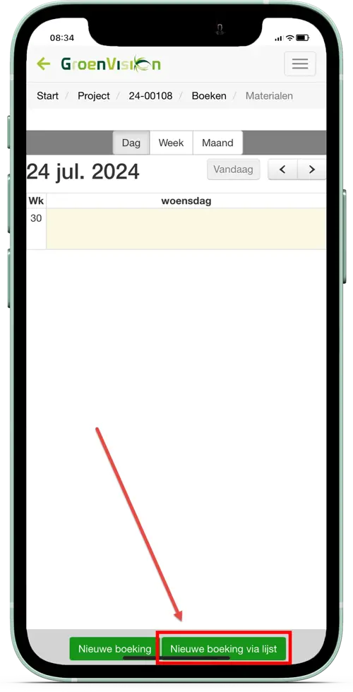 Om het boeken van de materialen te versnellen is de knop Nieuwe boeking via lijst toegevoegd bij het boeken van materialen. In de lijst wordt de materiaalomschrijving getoond, met daarachter een kolom om de hoeveelheden in te vullen. Een dubbeltik in die kolom opent het veld om de gebruikte hoeveelheden in te vullen.