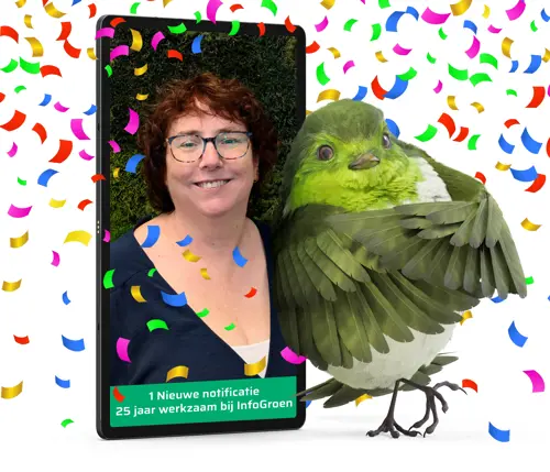 Wij zijn enorm blij met haar expertise, inzet en trouwe dienst voor InfoGroen en we hopen dat deze fijne collega ook haar 40-jarig jubileum bij ons zal beleven.