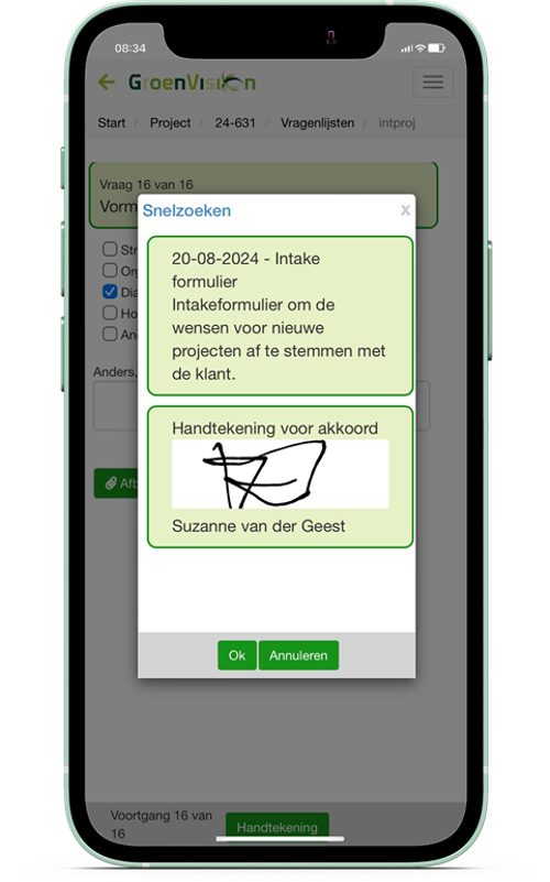 Denk aan een intakeformulier, klanttevredenheidsonderzoek of een oplevering.