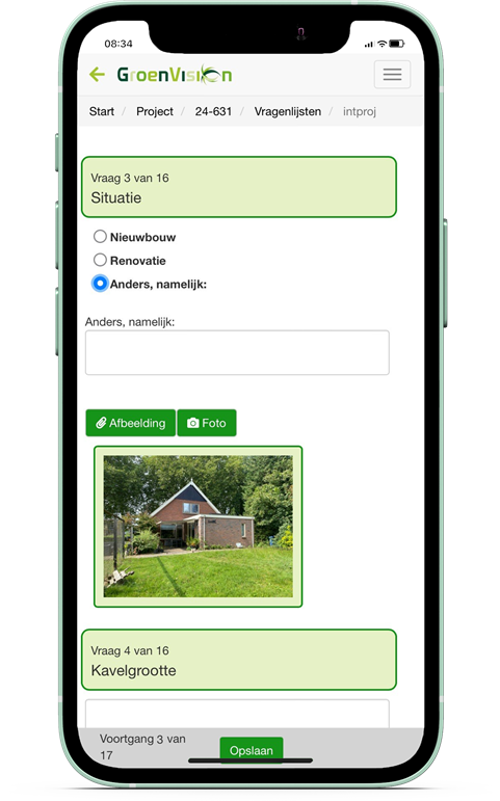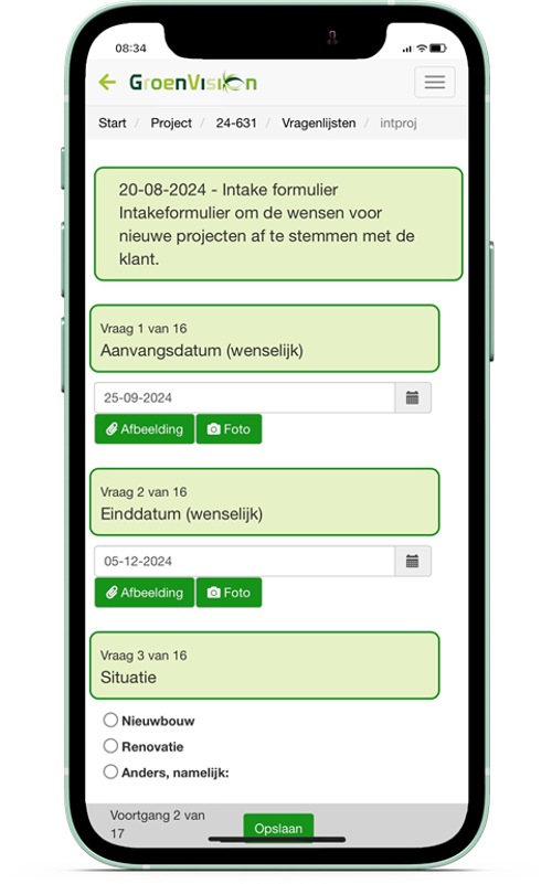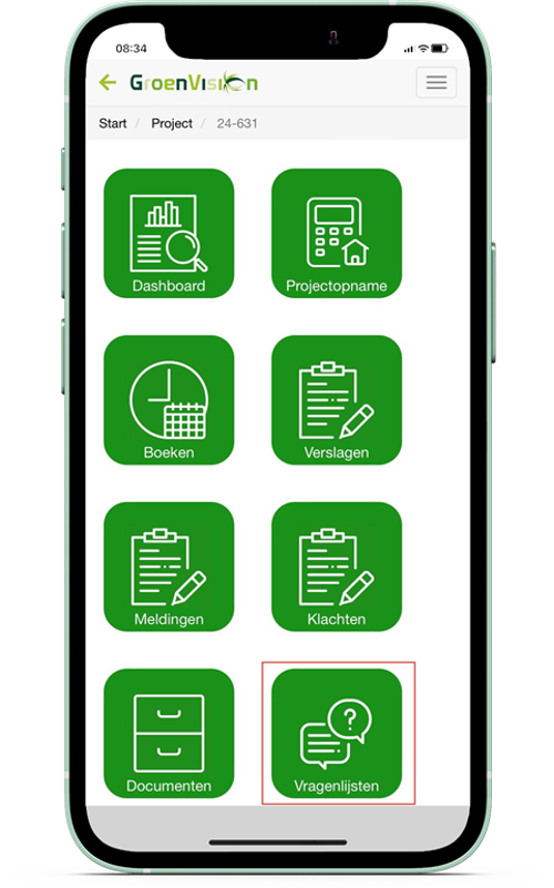 - De vragenlijst wordt ingevuld in VisionMobile.