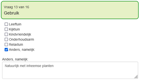- Keuzelijsten waar meerdere antwoorden aangevinkt kunnen worden.
