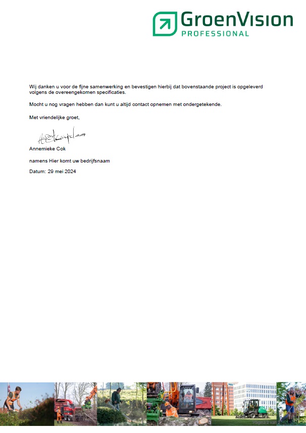 Als de oplevering in Mobile is gedaan, dan is het ook handig om die achteraf naar de klant te kunnen sturen. Daarom is er een nieuw standaard rapport toegevoegd die gemaakt kan worden als planningsdocument. Dat is handig, want wie de planningsbevestiging al naar de klant mailt, kan daarmee ook de oplevering mailen vanuit de tijdlijn. Het enige dat nog moet gebeuren is het ophalen van dit rapport uit de voorbeeldrapporten. Dit rapport heeft ID 791. Ophalen van het rapport wordt hier uitgelegd.