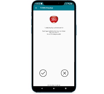 - Vervolgens komt een melding van de Tunix app dat er een inlogpoging is, met het verzoek deze goed te keuren.