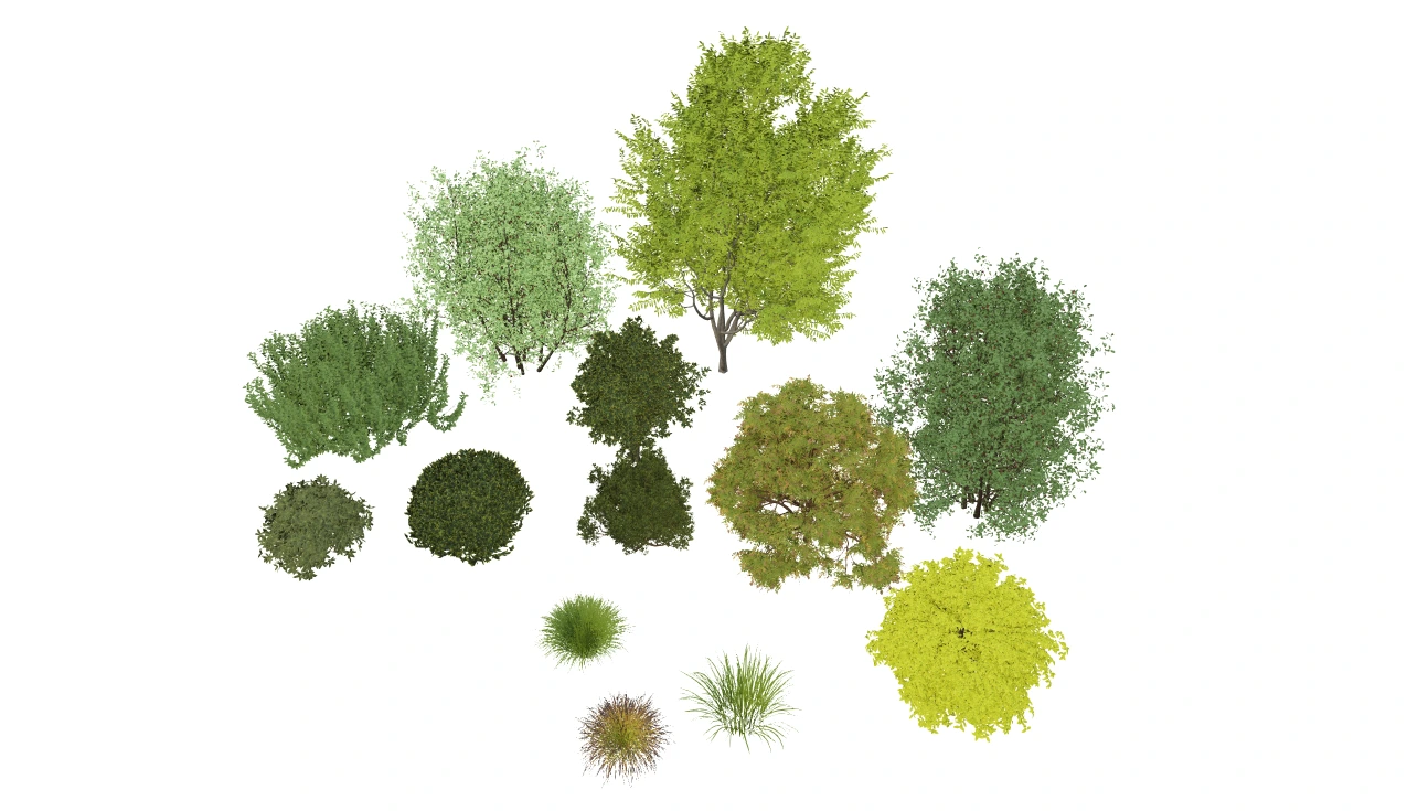 Met deze realistische symbolen voor beplanting worden je tekeningen visueel nog aantrekkelijker!