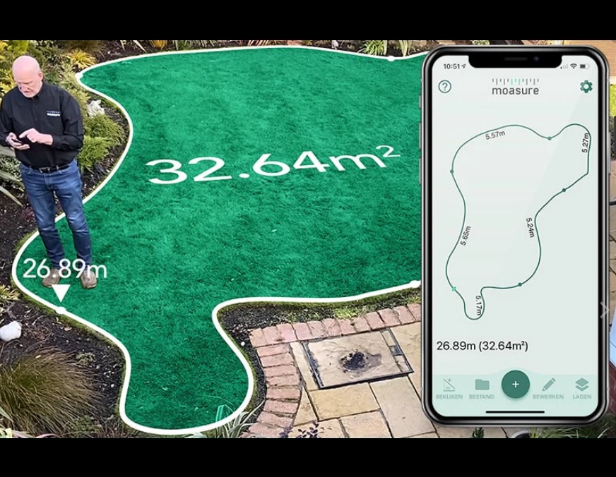 Deze revolutionaire tool maakt gebruik van 500 sensoren per seconde terwijl je beweegt, zodat het precies weet waar het zich in de 3D-ruimte bevindt, en werkt zonder telefoonsignaal of GPS. De Moasure ONE is inmiddels al een onmisbare tool voor professionals in de groensector en vele andere sectoren.