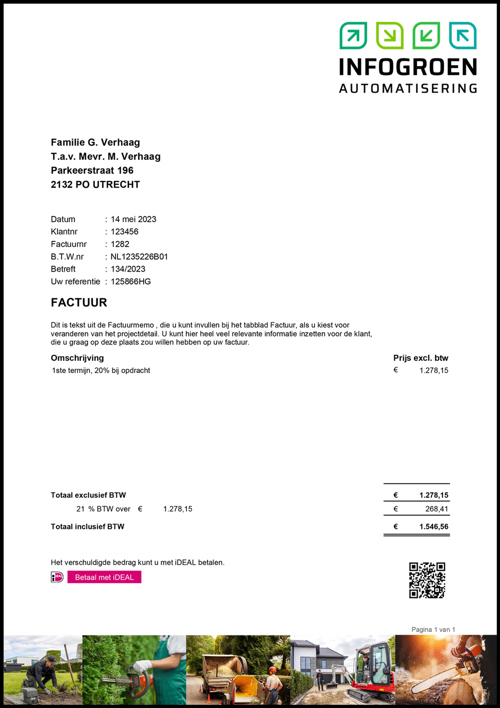 Wil je je (particuliere) klanten direct online laten betalen? De betaalsnelheid verhogen en het betaalgemak verbeteren? Voeg dan een iDeal koppeling toe aan je factuur. Deze optie is binnen GroenVision beschikbaar. De betaallink kan zowel in de begeleidende email als in de factuur worden opgenomen.