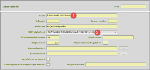 Instellen van de snelle import van RSX bestekken: