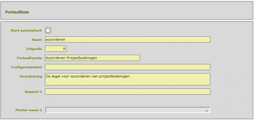 aan het beginvenster van Mobile worden toegevoegd. Wie al een tegel heeft om de tijdlijn te openen kan ook die tegel gebruiken. In beide gevallen opent immers de tijdlijn. Om de tegel te kunnen gebruiken is dezelfde autorisatie nodig als voor het accorderen zelf. De tegel kan worden toegevoegd aan het portaal (zie Instellingen VisionMobile). De instelling van het portaal item kan er zo uit zien: