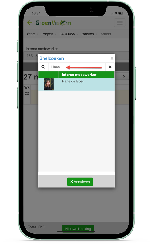 We hebben het boeken van uren in mobile wat persoonlijker gemaakt voor de gebruikers die de uren voor collega’s mogen boeken. Bij het zoeken van de collega kan nu ook op de voornaam worden gezocht.
