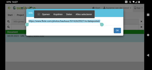 - Een internetlink onder info is ook te kopiëren en te plakken