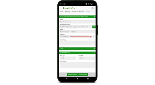 - Belknop zichtbaar in de planning